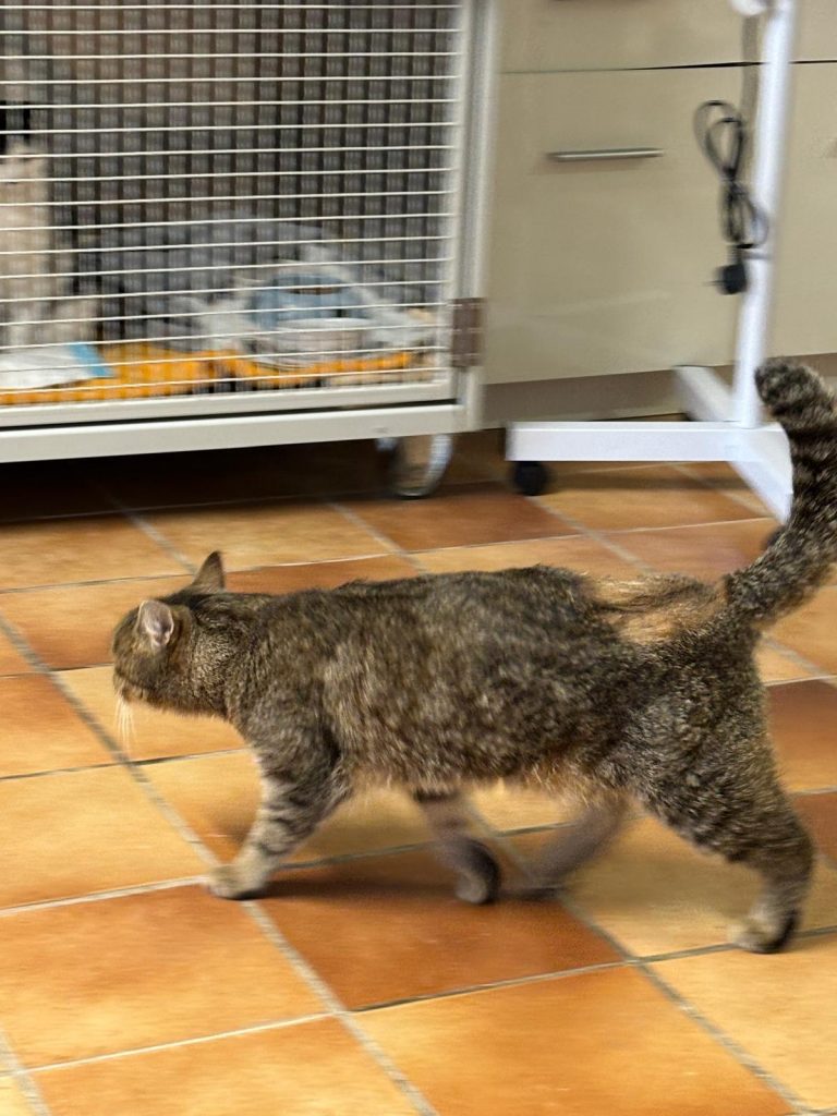Wanda ist eine ganz besondere Katze, die bereits viel durchstehen musste und dabei eine bewundernswerte Stärke gezeigt hat. Sie wurde als Fundkatze aufgenommen, nachdem sie von einem Auto angefahren worden war. Zunächst stand die schwere Entscheidung im Raum, ihr verletztes Bein amputieren zu müssen. Doch dank einer aufwendigen Operation, bei der eine Platte in ihrer Hüfte eingesetzt wurde, bekam Wanda eine zweite Chance. Die Mühe hat sich gelohnt: Sie hat sich erstaunlich gut erholt und beginnt mittlerweile wieder, ihr Bein vorsichtig zu belasten und zu bewegen.